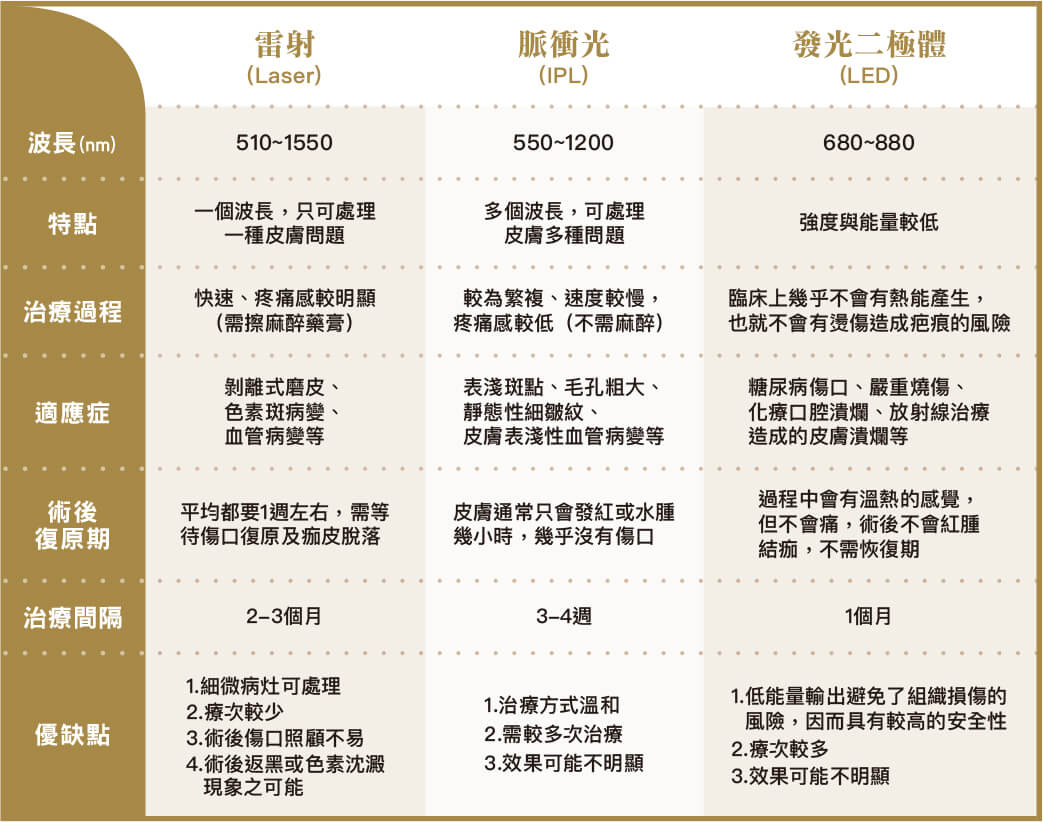 了解光的波長與強度後,才能更清楚醫美療程中的光到底有哪些不同。一般在醫美療程中使用的光分為三種: