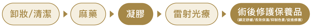 c. 抑制色素:為了除去肌膚上的斑點或疤痕進行光療,術後當然要更加細心呵護療程後的肌膚。術後的肌膚主要是以防曬的方式來抑制色素,其他美白的保養品則是需要待肌膚回復到術前穩定狀態時才能使用,避免美白成分刺激術後的敏感肌膚造成過敏或其他不適的狀況。